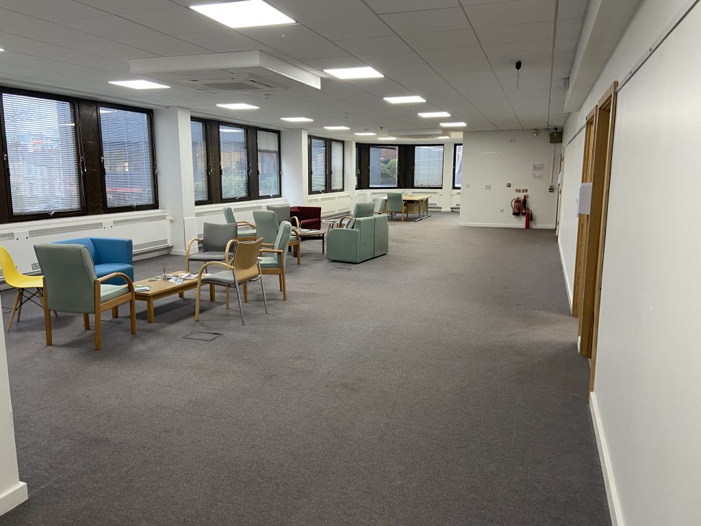 Large ground floor office space totalling 3,524.96 sq ft. The office is made up of many different private and meeting rooms and also has an outside courtyard and on-site parking. The office also has a kitchen and WC’s.