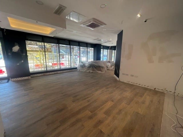 Ground floor commercial space with E use benefitting from a 20m wide glass shop frontage. The premises is currently partitioned with kitchen, WC and office with the majority being open plan. The premises benefits from air conditioning/heating, alarm and fire alarm system as well as 3 phase power. The premises would be suitable for office, retail, showroom, restaurant, coffee shop, gym (training studio) etc.