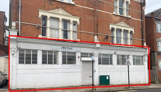 Commercial space with E use – suitable for a variety of uses including office, retail, gym, community use. Comprising double ground floor commercial space which has previously been used for community use (D1) now believed to be E use. Suitable for a variety of different business’ activities including day nursery, gym, retail, office, restaurant and other uses which fall within this user class. Although the premises are divided into two sections there are two intercommunicating doors in different positions to allow access from both sides. The premises have central heating (not tested) and electric roller shutters to the front entrance door. There are high level windows to the front elevation.